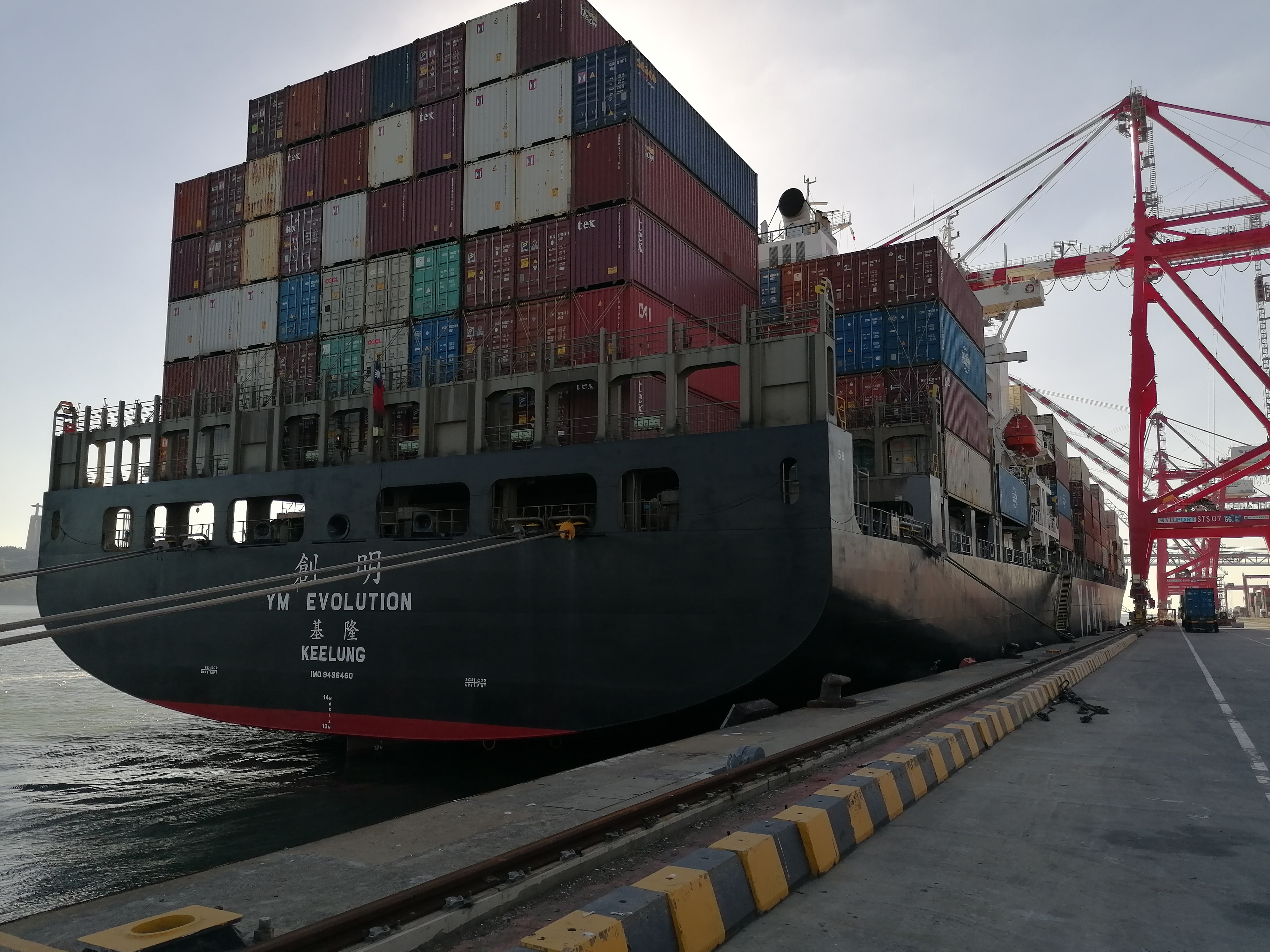 Construído em 2014 nos estaleiros de Kaohsiung, o “YM Evolution” tem 259 metros de comprimento, 47.952 toneladas de arqueação bruta e pode transportar até 4.662 contentores TEU.