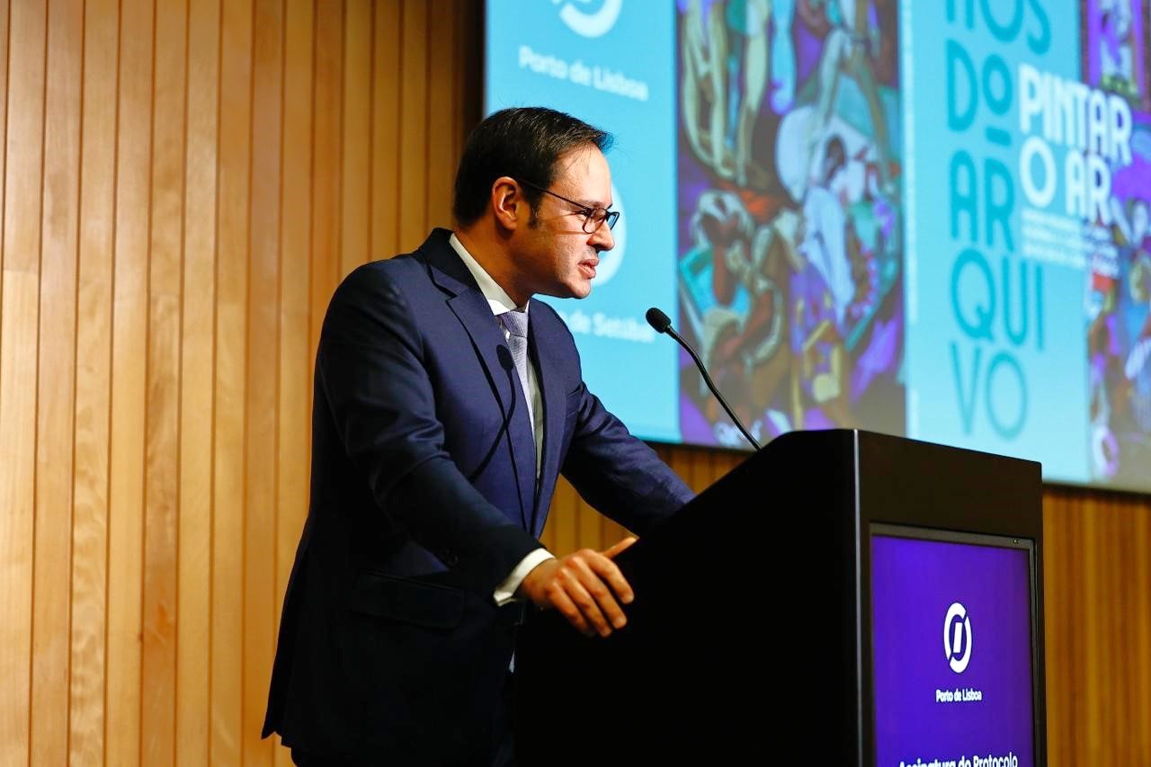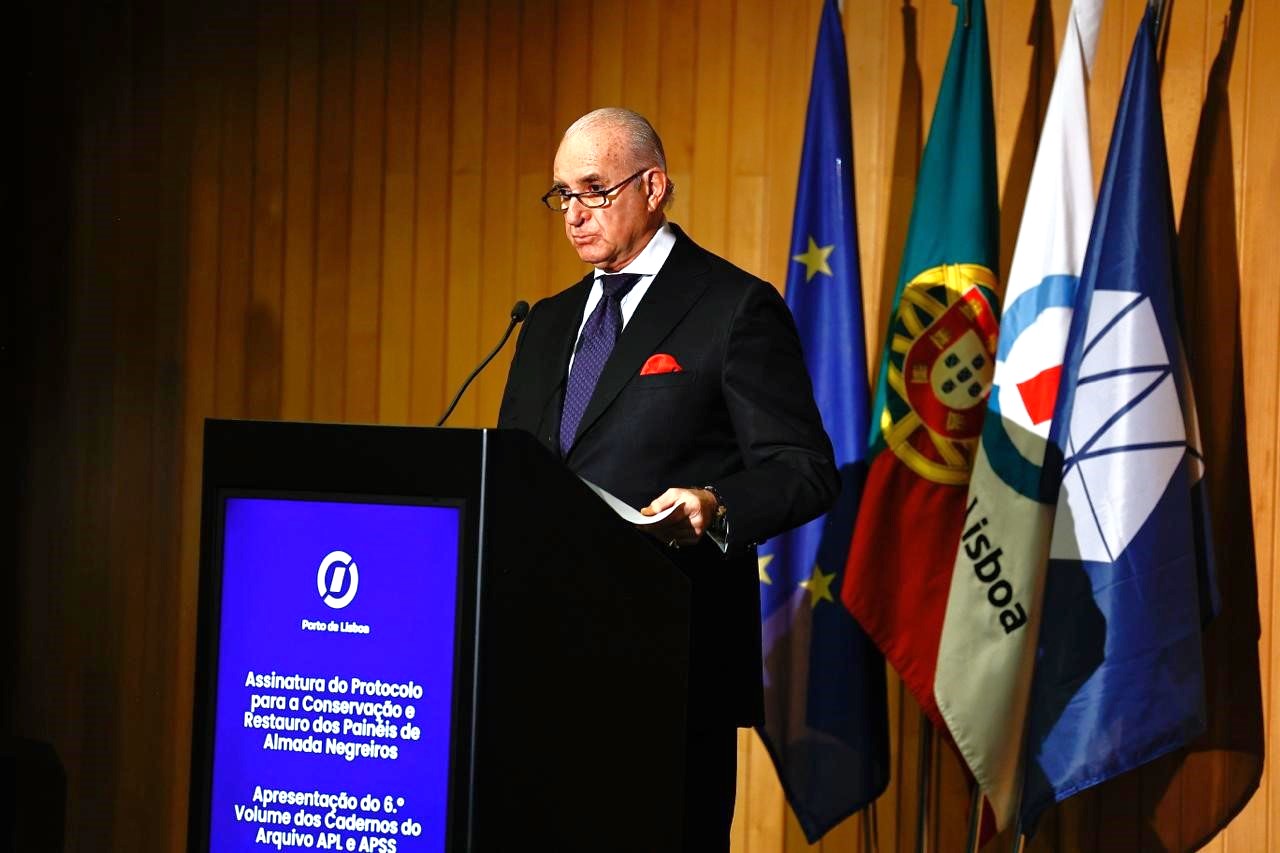 O Secretário da Estado das Infraestruturas, Hugo Espírito Santo, presidiu hoje à apresentação do VI volume dos Cadernos do Porto de Lisboa e à assinatura de um novo protocolo de colaboração entre a APL-Administração do Porto de Lisboa e a World Monuments Fund Portugal, intitulado Conservação e Restauro dos Painéis de Almada Negreiros na Gare Marítima de Alcântara.